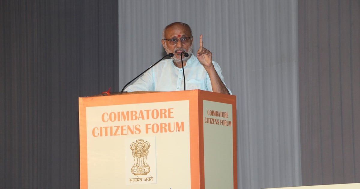 சி.பி. ராதாகிருஷ்ணன் நாட்டின் குடியரசு துணைத் தலைவராகப் பதவியேற்ற பிறகு முதல்முறையாக இன்று தமிழ்நாடு வந்தார். இன்று காலை கோவை வந்த அவருக்கு தொழில் அமைப்புகள் சார்பில் கொடிசியா அரங்கில் பாராட்டு விழா நடத்தப்பட்டது. இந்தக் கூட்டத்தில் கோவையின் முக்கிய தொழிலதிபர்கள், பாஜக மாநில தலைவர் நயினார் நாகேந்திரன், கேசவ விநாயகம், ஹெச்.ராஜா, அண்ணாமலை, வானதி சீனிவாசன்,